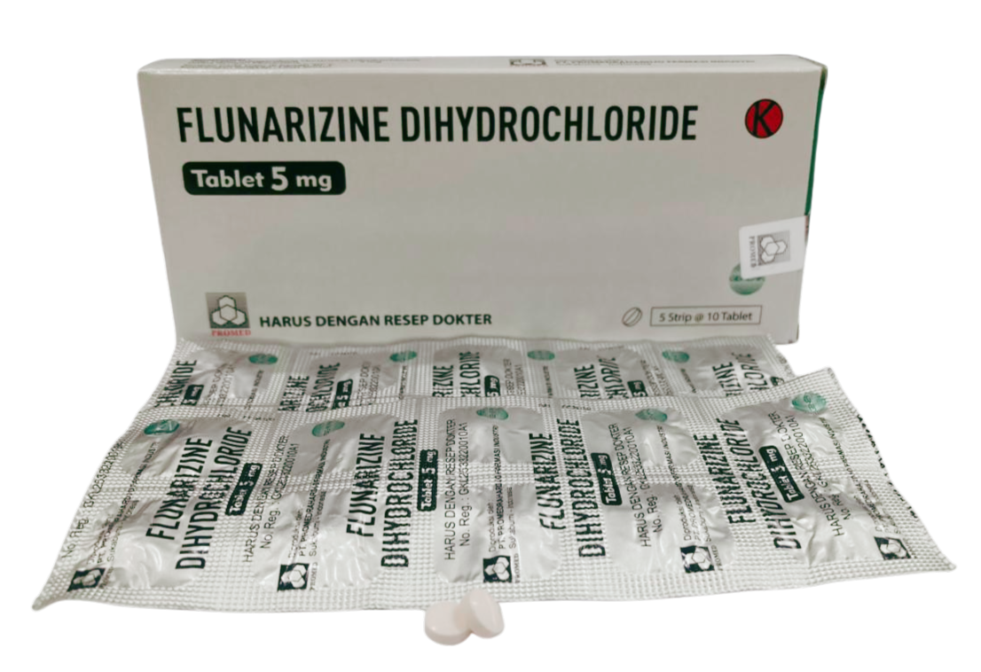 Tiap tablet mengandung Flunarizine 5 mg