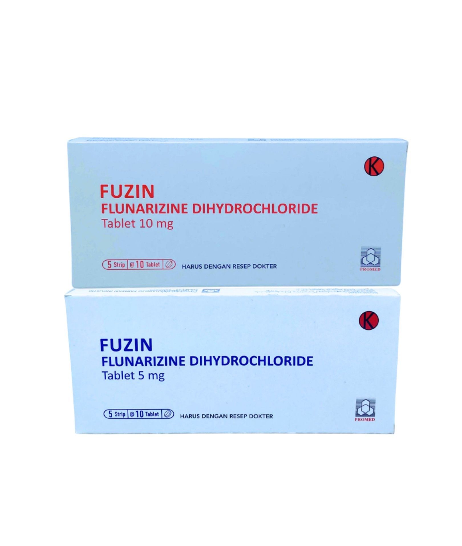 FUZIN 10 MG : Tiap tablet mengandung Flunarizine Dihydrochloride setara dengan Flunarizine 10 mg
